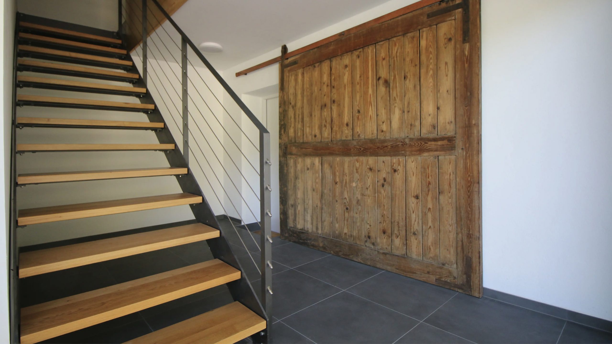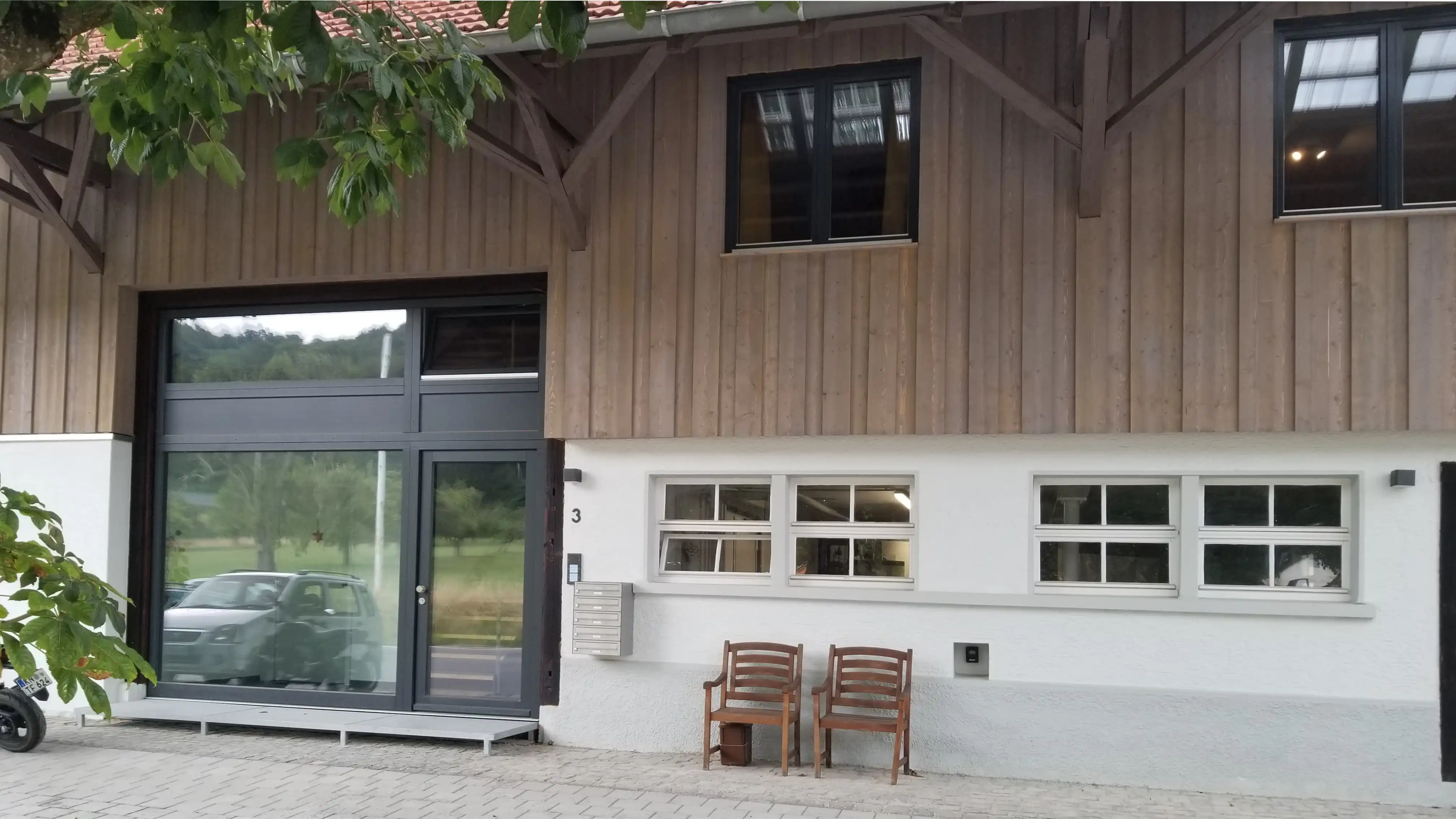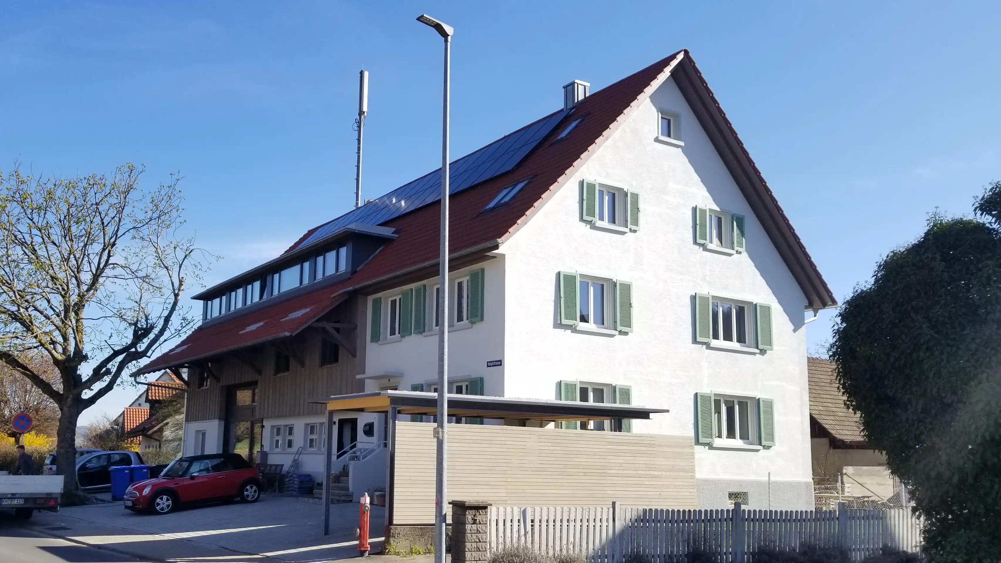 Der ehemalige Bauernhof ist, wie für den westlichen Bodensee typisch, als Langhaus mit Wohnteil, Stall und Scheune unter einem Dach gebaut. Ziel war es, im Sinne von Nachhaltigkeit, das ortsbildprägende Gebäude zu erhalten und im Rahmen einer Sanierung neuen Wohnraum zu schaffen. Der Wohnteil des Hofes wurde umgestaltet, energetisch saniert und der Dachraum zusätzlich ausgebaut. Hier entstand eine großzügige Wohneinheit mit Garten im Rückbereich. In der ehemaligen Scheune entstanden 5 weitere Wohneinheiten. Der Ausbau erfolgte in Holzbauweise mit sehr hohem Dämmstandard. Die Erwärmung von Fußbodenheizung und Brauchwasser erfolgt über eine Luftwärmepumpe mit eigener PV-Stromerzeugung. Der ehemalige Kuhstall dient als Kellerersatzraum. Hier befinden sich die Haustechnik, Waschmaschinen und Platz für Fahrräder. Der Futtertrog mit Gatter bleibt als Raumteiler erhalten. Eine eingestellte “Blackbox“ bietet Abstellflächen für jede Wohnung. Die Straßenansicht mit dem typischen ausladenden Vordach, die verwendete Holzschalung und die verputzten Wandflächen entsprechen der früheren Gestaltung. Gartenseitig wurde der Gebäudeteil mit Schweinestall und Werkstatt abgerissen und stattdessen ein Stahl-Holzbalkon angestellt. Die Fassade ist hier zur Belichtung der Wohnungen großzügig geöffnet. Im Innenraum sorgt die vorhandene sichtbare Holzkonstruktion für besondere Wohnatmosphäre.