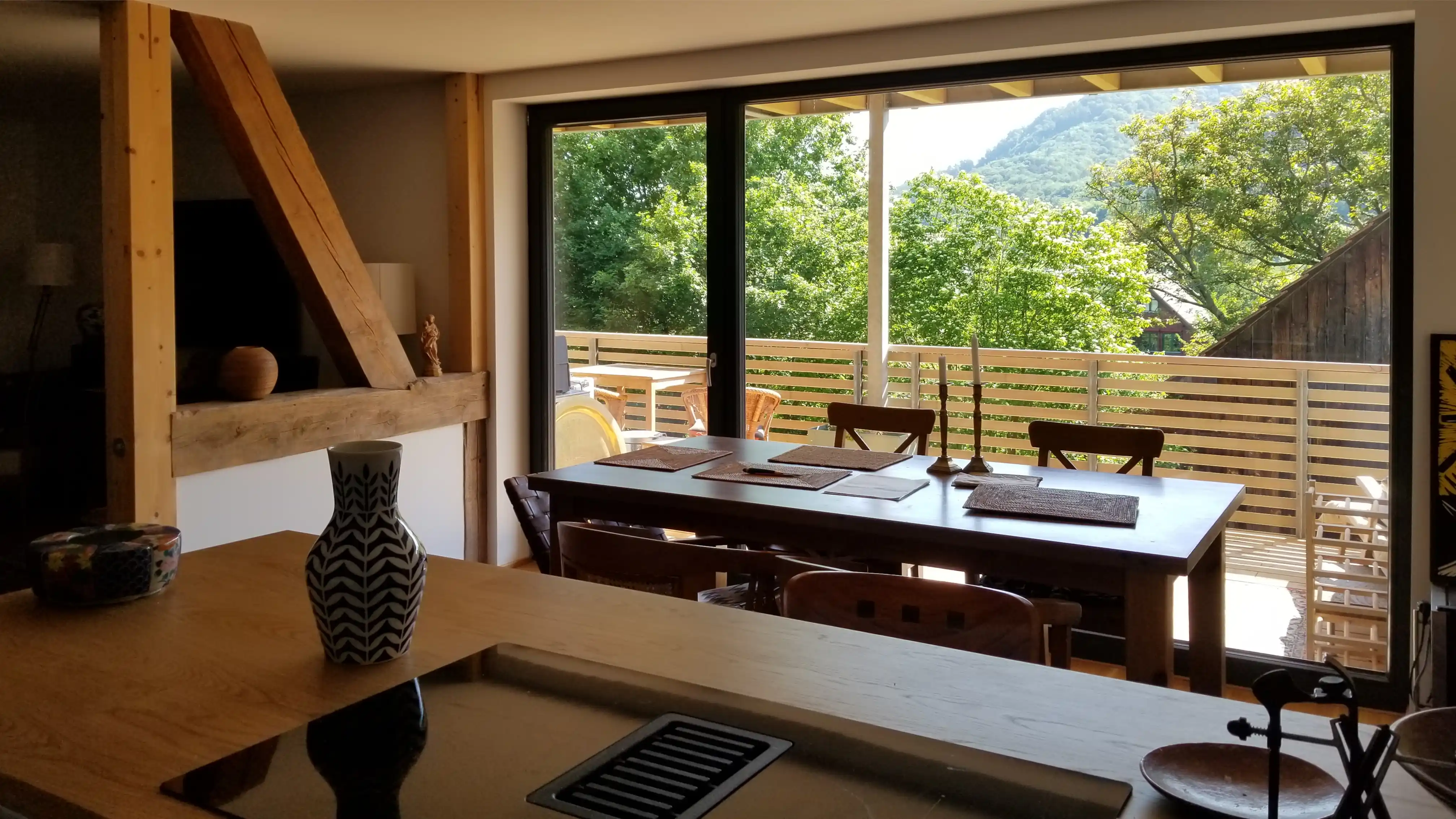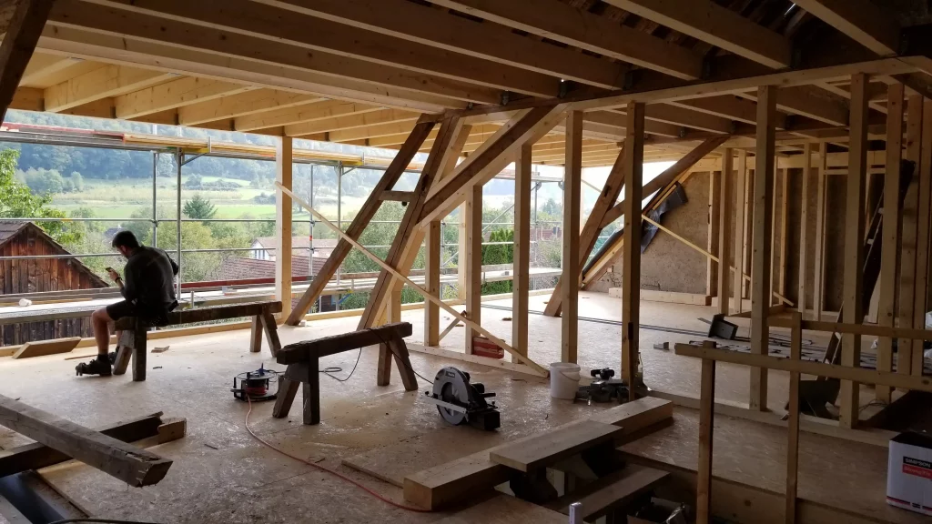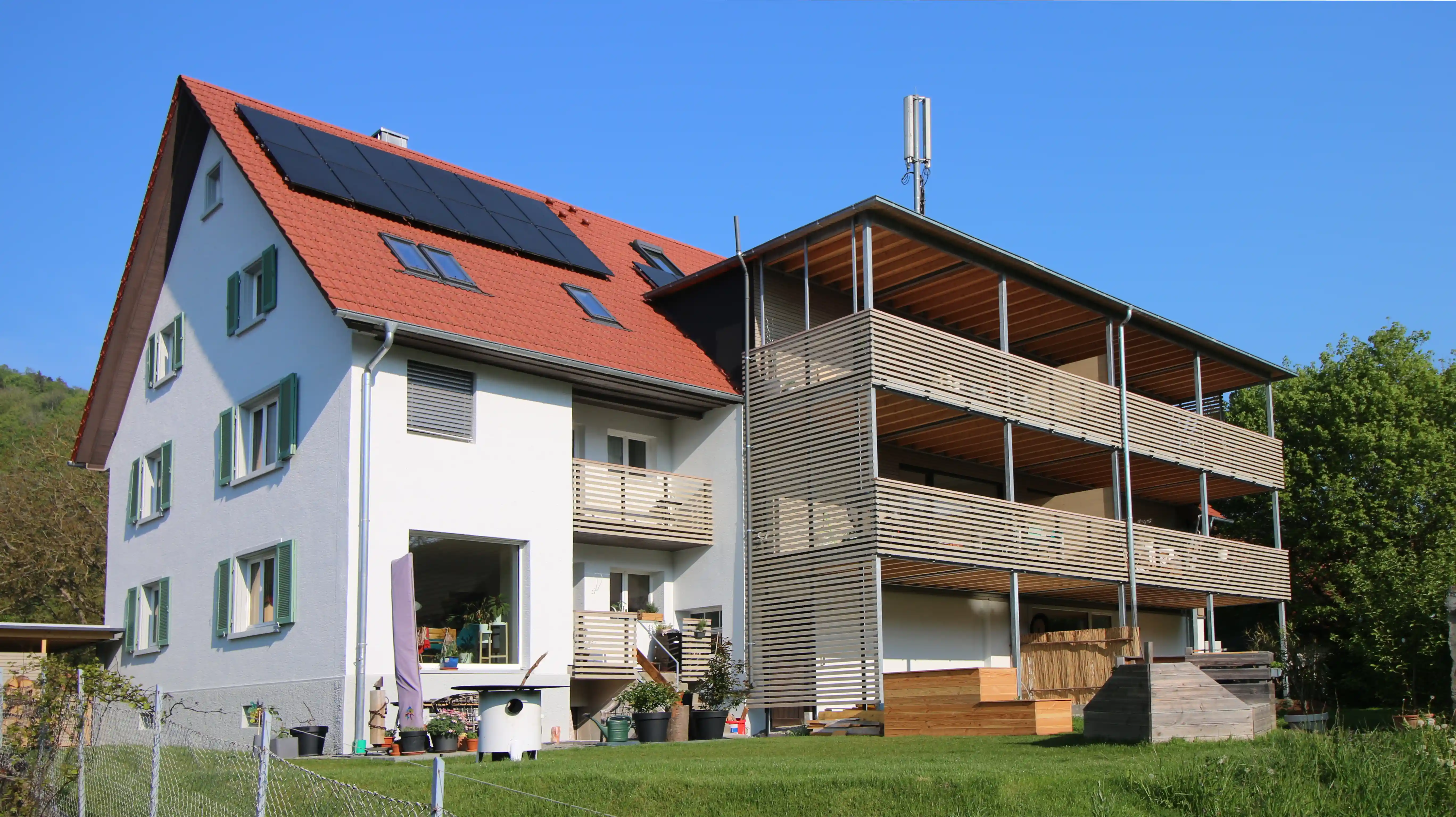 Der ehemalige Bauernhof ist, wie für den westlichen Bodensee typisch, als Langhaus mit Wohnteil, Stall und Scheune unter einem Dach gebaut. Ziel war es, im Sinne von Nachhaltigkeit, das ortsbildprägende Gebäude zu erhalten und im Rahmen einer Sanierung neuen Wohnraum zu schaffen. Der Wohnteil des Hofes wurde umgestaltet, energetisch saniert und der Dachraum zusätzlich ausgebaut. Hier entstand eine großzügige Wohneinheit mit Garten im Rückbereich. In der ehemaligen Scheune entstanden 5 weitere Wohneinheiten. Der Ausbau erfolgte in Holzbauweise mit sehr hohem Dämmstandard. Die Erwärmung von Fußbodenheizung und Brauchwasser erfolgt über eine Luftwärmepumpe mit eigener PV-Stromerzeugung. Der ehemalige Kuhstall dient als Kellerersatzraum. Hier befinden sich die Haustechnik, Waschmaschinen und Platz für Fahrräder. Der Futtertrog mit Gatter bleibt als Raumteiler erhalten. Eine eingestellte “Blackbox“ bietet Abstellflächen für jede Wohnung. Die Straßenansicht mit dem typischen ausladenden Vordach, die verwendete Holzschalung und die verputzten Wandflächen entsprechen der früheren Gestaltung. Gartenseitig wurde der Gebäudeteil mit Schweinestall und Werkstatt abgerissen und stattdessen ein Stahl-Holzbalkon angestellt. Die Fassade ist hier zur Belichtung der Wohnungen großzügig geöffnet. Im Innenraum sorgt die vorhandene sichtbare Holzkonstruktion für besondere Wohnatmosphäre.